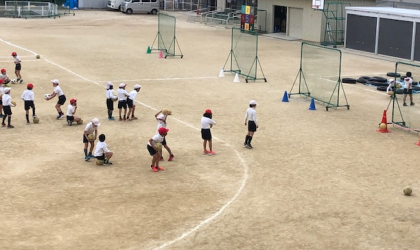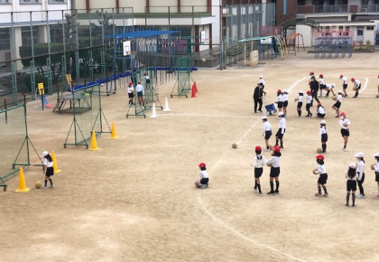 2時間目の運動場で、今日は2年1組と2組が運動場で活動です。