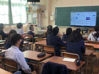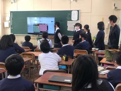 6年2組の教室です。今日は、日本とつながりの深い国の人々の生活の様子について、それぞれがみんなの前で発表を行いました。