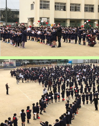 最後は教室に入った6年生に手を振って、満面の笑みをうかべる子どもたちで運動場がキラキラ輝いて見えました。