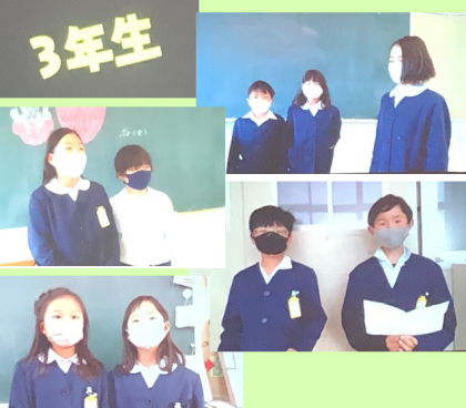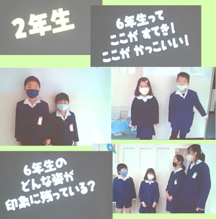 1年生から5年生まで、みんなで6年生へ言葉のプレゼントです。
