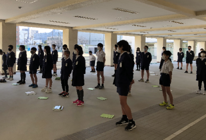 外になるここならと、ピロティで歌唱をしているのは6年生です。