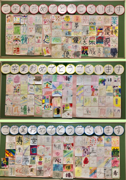 学校のいたるところには、6年生に向けて、お祝いメッセージが貼られています。