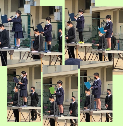 校長先生からのお話の後、1年・4年の児童代表が、今年度頑張ったこと、成長したこと、今後の目標などを作文にして発表しました。