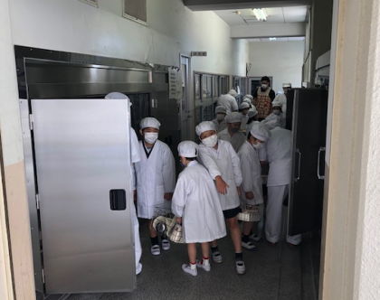 重い食器も食缶もなんのその。わくわく顔の子どもたちでした。