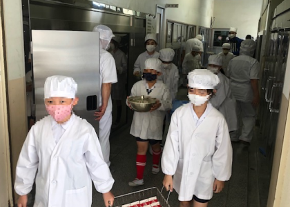 給食当番の子どもたちも久しぶりの給食に気合が入っているようです。