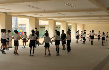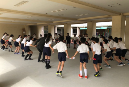 5年3組の子どもたちが輪になって、楽し気なゲームをしていました。