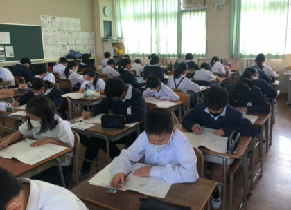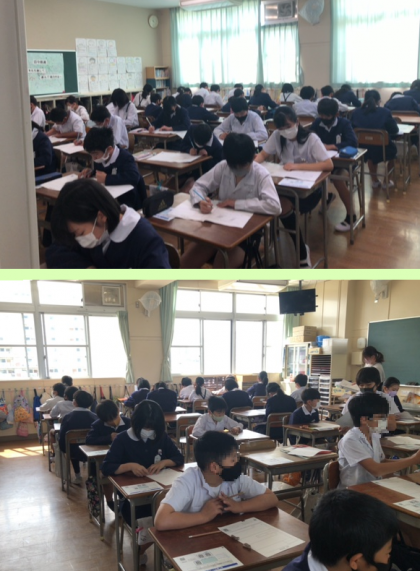 1時間目国語、2時間目算数、3時間目理科。質問用紙も含め、6年生の子どもたちは、今日一日、黙々と取り組みました。