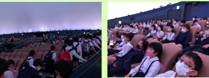 今日の空のことからから、太陽、月、星の動きについて楽しい語り口で説明されるプラネタリウムに、心をつかまれ、子どもたちはしっかり学習できたようです。