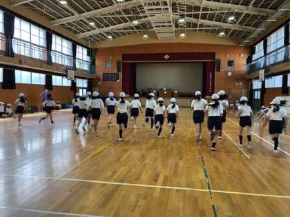 1時間目の体育館。スポーツテストの「シャトルラン」をしているのは5年3組です。