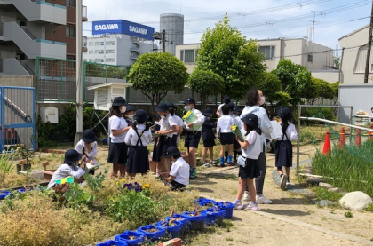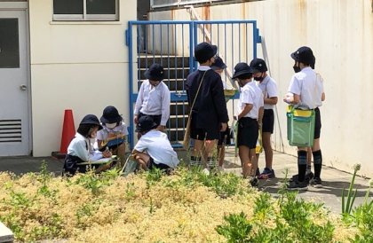 2時間目。学習園のあたりに集まっているのは、3年1組の子どもたちです。