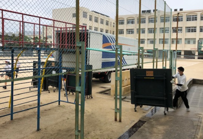 建て替えの工事が迫る本校の体育館兼講堂の中身を、すっかり空にするため、必要物品を別のところに避難させるお引越しの日です。