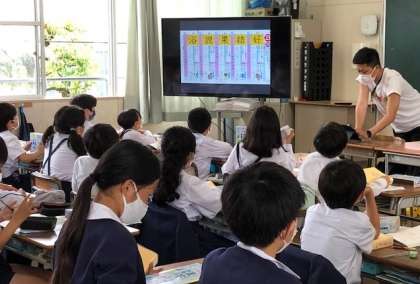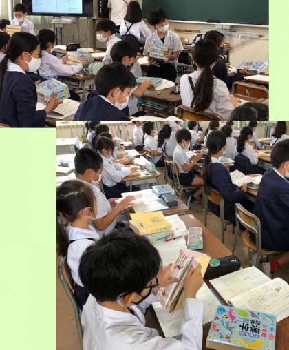 5時間目。4年3組は国語の時間です。今日は漢字辞典の使い方を学習しました。