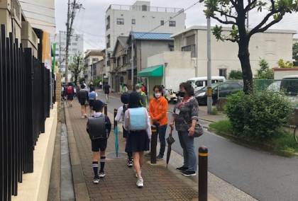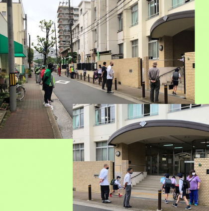 子どもたちの登校に合わせ、地域の方々、PTAの方々によるあいさつ運動が行われました。