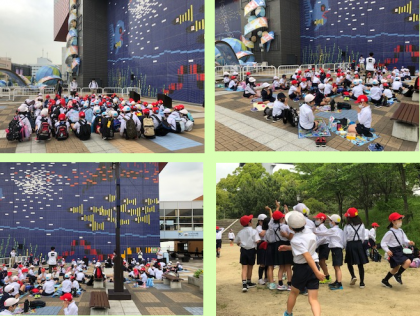 見学が終わり、外に出てお弁当タイムです。