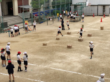 ひょいひょいと飛び越えていく子どもたち。とても楽しそうに見えました。
