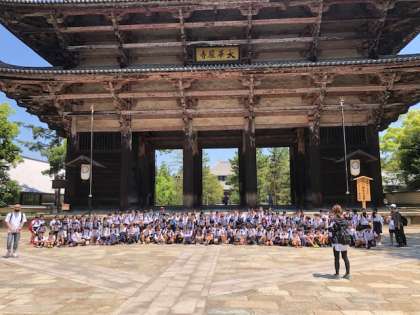 東大寺南門前で、学年全員の記念撮影です。