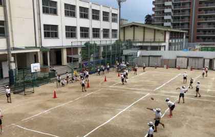 ちょっと難しそうでしたが、果敢に飛びついていく様子はなかなか6年生らしく、頑張って走りこんでうまくキャッチできた人もいました。思わず拍手です。