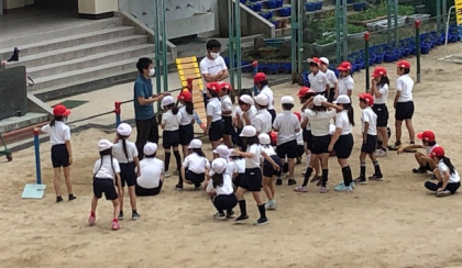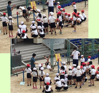 2時間目、鉄棒の前に集まっているのは2年3組の子どもたちです。