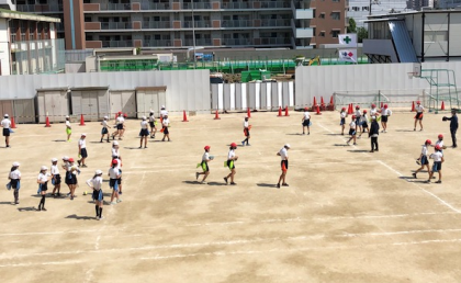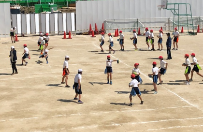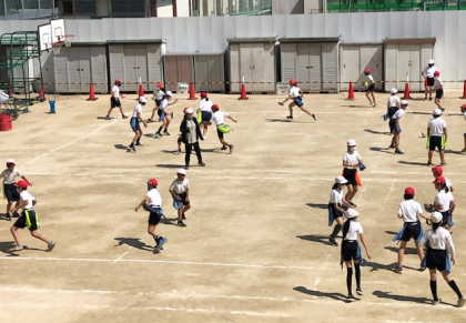 みんなが腰にカラーのフラッグを付けています。それを取られると負け、というルールでしょうか。機敏な動きがたくさん見られました。