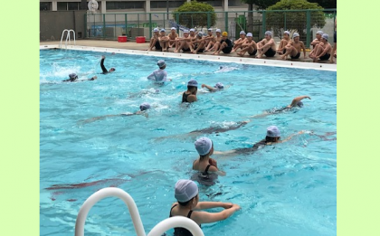 6年生は、7月の終わりまでには、25mが泳げるようになることを目標にするようです。