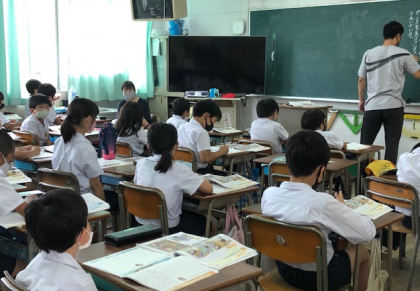 様々なシチュエーションが漫画で描かれた教科書を見て、子どもたちはダメなところを指摘します。