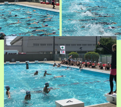 水面がキラキラ輝いて水泳日和の今日のお天気です。子どもたちも気持ちよさそうに泳いでいました。