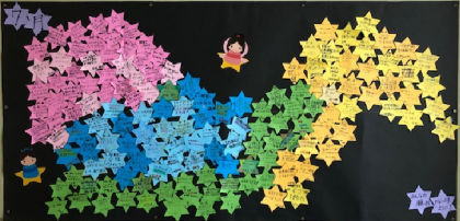 天の川をイメージしたというたくさんの星たちは、よく見ると子どもたちの願い事が書かれています。