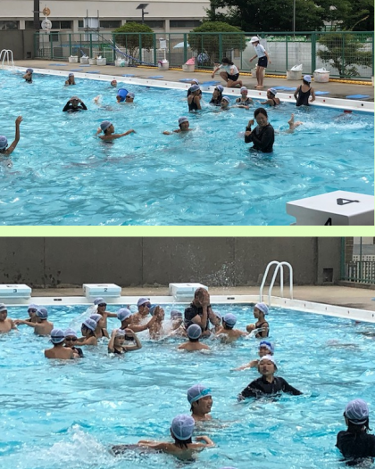 今日の最後の時間の6時間目。プールでは、5年3組と4組が活動していました。