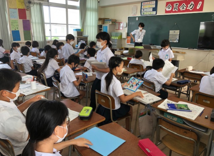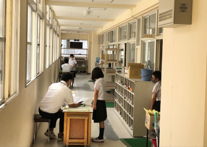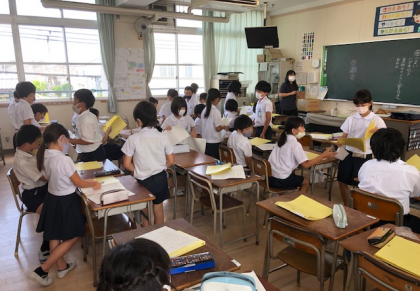 先生から、「あゆみ」や「キャリアパスポート」を手渡される子どもたち。