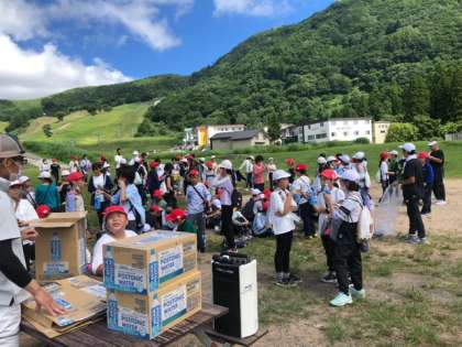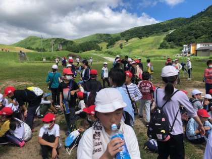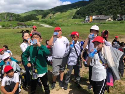 登山から帰ってきて、宿舎に戻りました。着くとすぐに、スポーツドリンクで水分補給です。次は、飯ごう炊さんです。