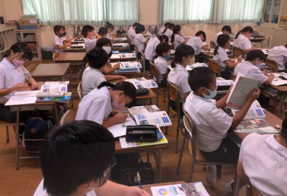 5時間目。5年1組の教室は、社会「つくり育てる漁業」の学習をしていました。