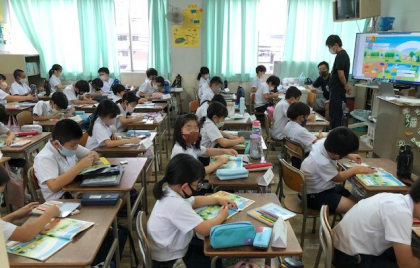 3年2組の5時間目。英語の学習です。