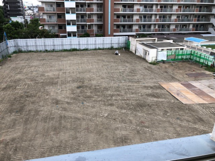 重機が何台も動きまわって、床のコンクリート部分を割り、地を均していたようでしたが、今日、上から見ると、建物のあった部分は、跡形もなくきれいな更地になっていました。