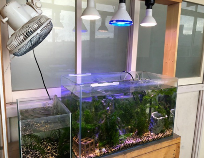 2学期になって、何だか水槽がきれいになったみたい、と目をとめてしまう理科室の前です。