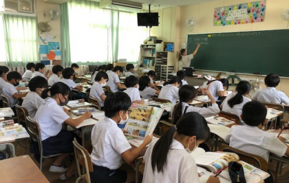時代は、武士が台頭してきた平安の時代。先生の話に子どもたちは聞き入ります。