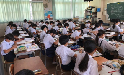 授業が進むにつれたくさんの板書になりますが、しっかりとノートに書き留めている様子です。