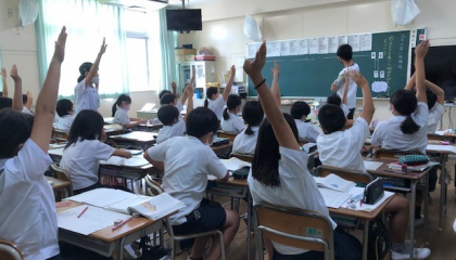 先生からのいろいろな質問に、子どもたちは、その全部に答えたくて、自分を当ててくれとばかり元気のいい挙手をします。