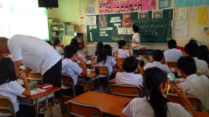 動物の歯の写真や、実際に治療を行った人の歯の写真を見ながら、生活習慣病である歯周病の勉強をしました。2・4年生の時に勉強をした「むし歯の仕組み」をしっかりと覚えていたので、歯科衛生士さんからの質問や、グループでの発表にも、みんなで意見を出し合いしっかりと答えることができていました。