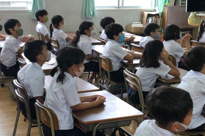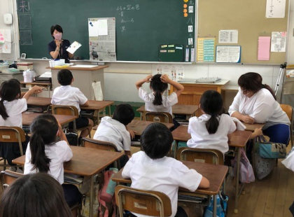 魔法を見るような目で、先生の説明を聞く子どもたち。やってみたくて、うずうずかな。