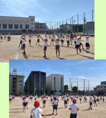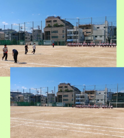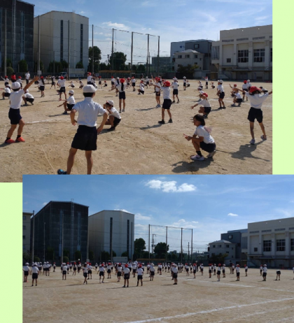 今日の午後、2年生と5年生の子どもたちが、梅香中学校の運動場をお借りし、運動会の練習をしました。