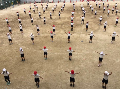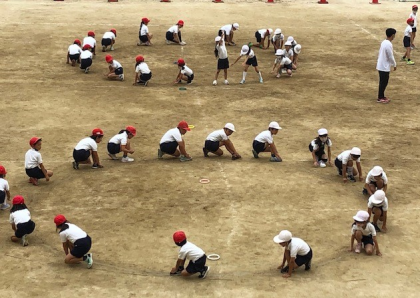 3時間目の運動場では2年生が、団体演技の練習をしていました。