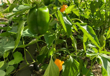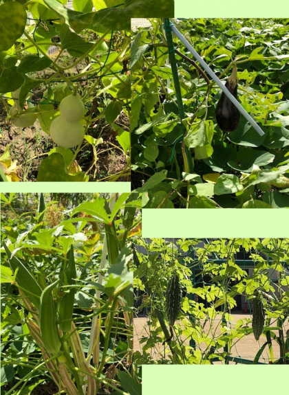 工事の関係でやっと移設されたこの学習園ですが、夏前に、たくさんの苗を植えたのが、いろいろ実っています。