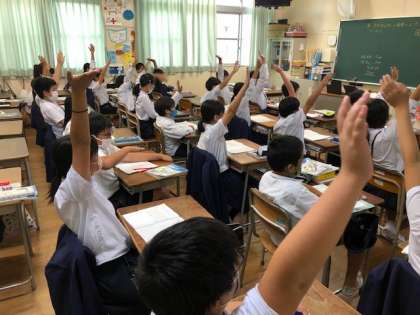 先生から例題を出されると、「底辺×高さ」で求められることをしっかり覚えた子どもたちは、次々、自信たっぷりに手を挙げます。