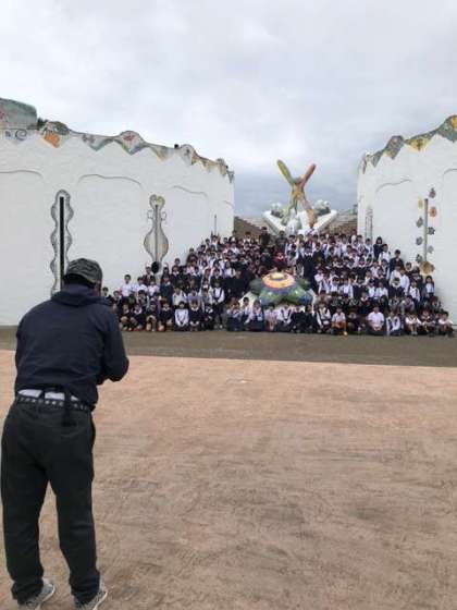 6年生全体で写真をフィエスタ広場に登る階段で撮りました。