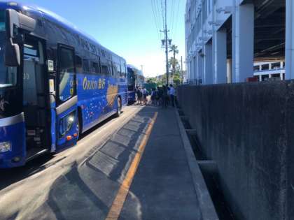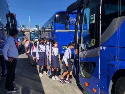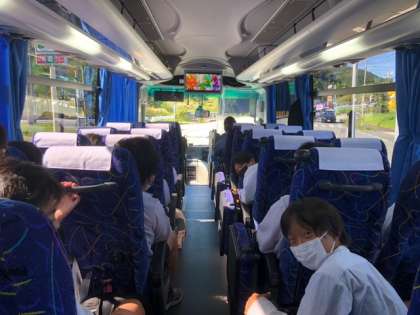 昼食場所のレストランから大阪に向かってバスが出発しました。