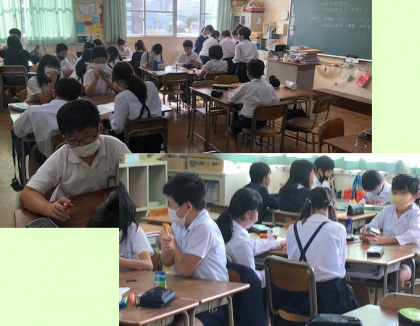 すでに終えていて、教室の前に積み上げているクラスもありました。