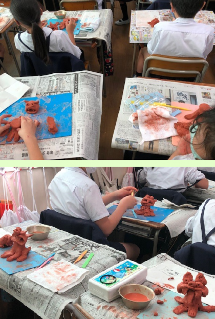 「シーサー」を絵に描いていて、それを見本に作成しているようです。