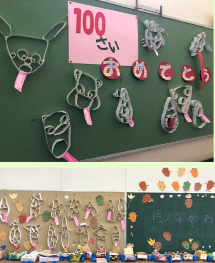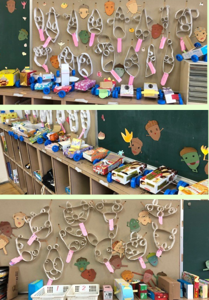 2年生の教室では、「いろんな顔」と題した作品の展示もあります。