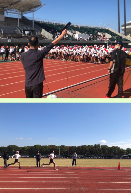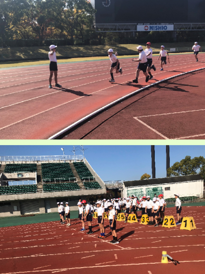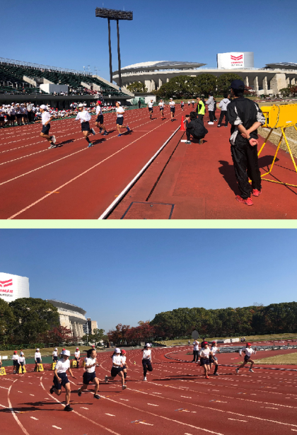国際試合も行われる本格的な陸上競技場に、子どもたちも少しハイテンション。