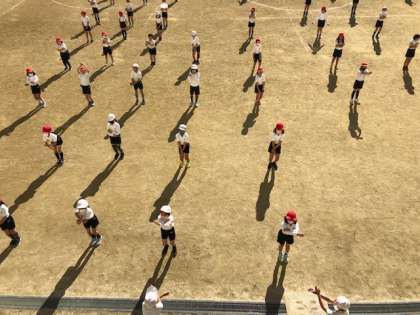 最初の準備運動の掛け声です。体育の係の人に、みんなで合わせて号令です。